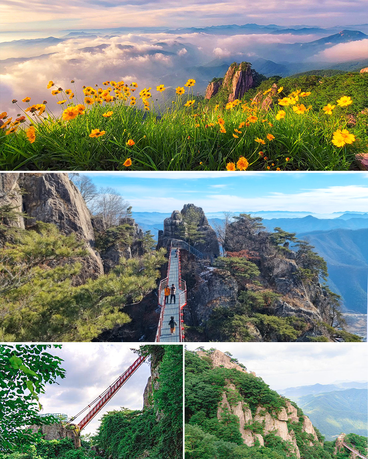 대둔산 눈꽃 트래킹 - 코스: 대둔산케이블카 탑승~금강구름다리~삼선구름다리~마천대 정상~약수정휴게소~케이블카 - 거리: 왕복 6.6㎞, 소요시간: 약3시간(여유1시간) - 삼선구름다리까지 다녀오셔도 됩니다. - 왕복 케이블카비 포함(16,000원) - 점심식사가 늦으니 간식 준비하시면 좋습니다. * 트래킹난이도 : 하(상) ![]() 완주 대둔산케이블카
