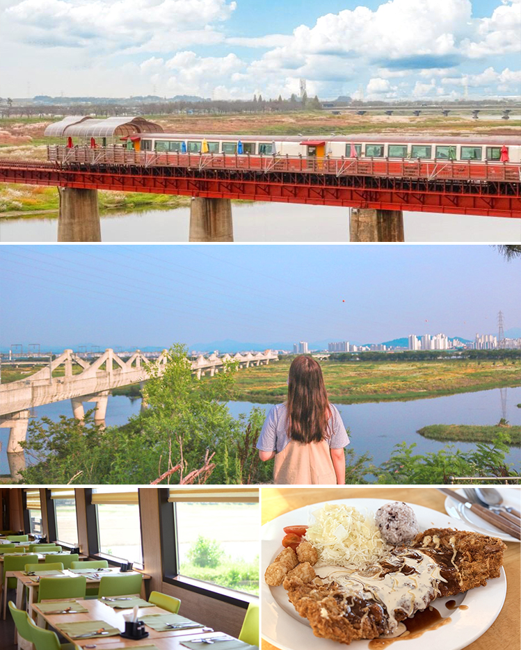 비비정예술열차에서 점심식사(제공식) - 완주 만경강을 내려다 볼 수 있는 폐열차공간 - 기차를 개조한 레스토랑에서 맛있는 음식(메뉴: 돈까스)