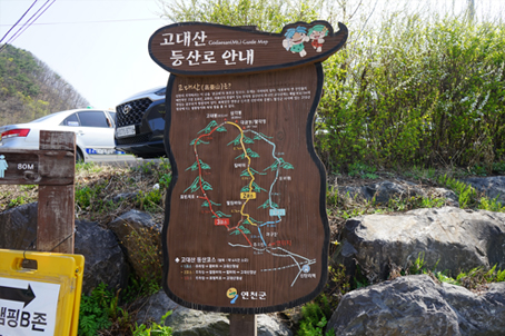 연천 고대산 트래킹 - 1코스 올라갔다가 3코스로 하산합니다. - 1코스 오르막 : 2.72㎞, 3시간소요(하산길 표범폭포 비경감상) - 3코스 하산 : 3.03㎞, 1시간30분소요 - 총 5시간 드립니다. * 트래킹난이도 : 중(하)