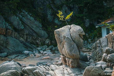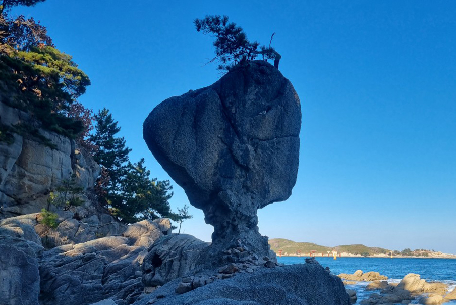 송지호 해변 옆에 자리한 아슬아슬한 서낭바위 관람
