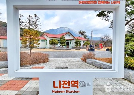 - 나전광업소 폐광과 함께 쇠락한 나전역은 1960년대를 콘셉트로 복원돼 추억 여행지로 변신했다. 대합실 문을 열면 널찍한 공간에 그 시절의 의자, 난로, 역무실 등이 모습을 드러낸다.