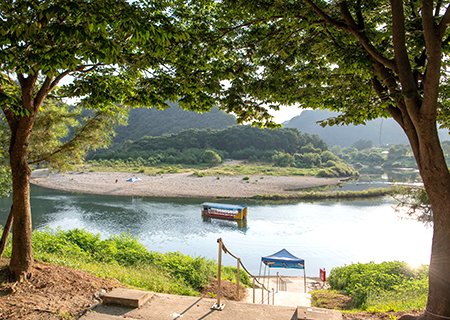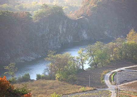 선돌 관람 - 푸른강과 층암절벽이 절경을 이루는 곳.