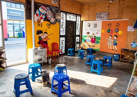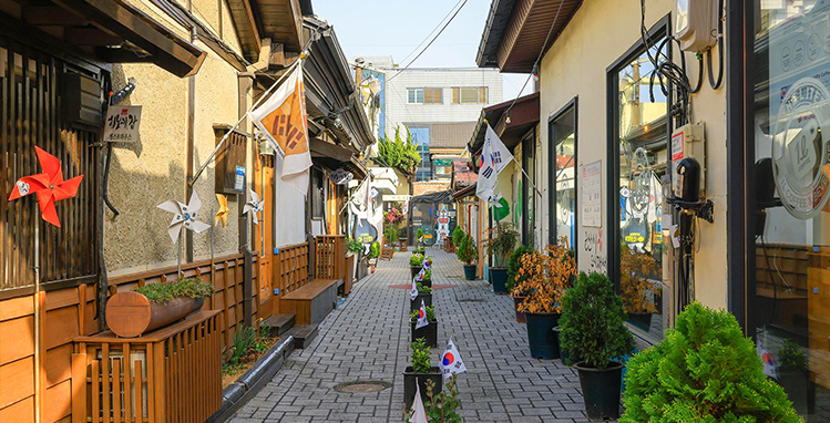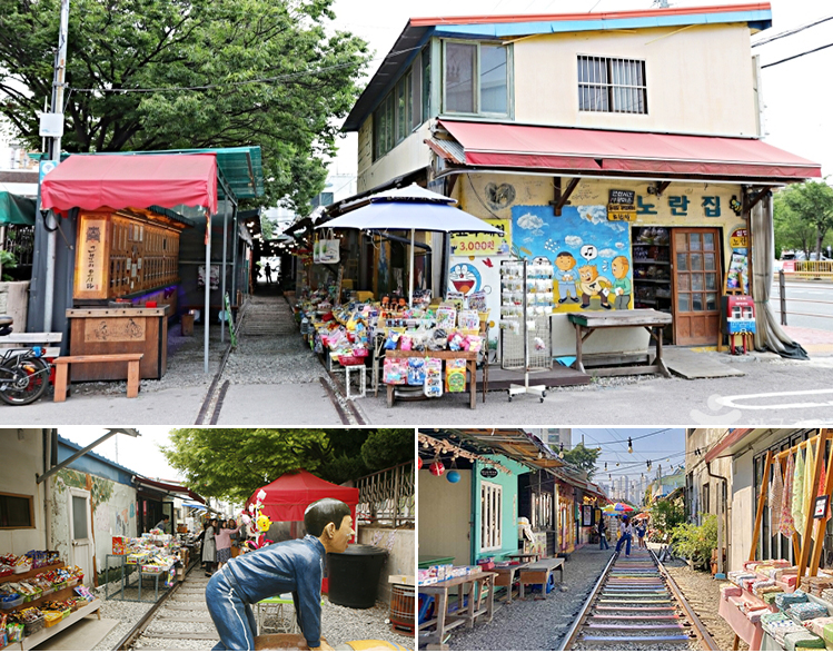 철길 양옆으로 뽑기, 달고나, 딱지 등 추억의 먹거리와 놀이들이 가득해요. 하나씩 골라 사먹는 재미도 쏠쏠하답니다. 교복 대여점도 있어, 옛 교복을 입고 철길 위에서 사진 한 장 남겨보는 재미도 있어요. 레트로한 감성이 물씬 풍기는 경암동 철길마을 군산에 오신다면 꼭 들러보세요! |
