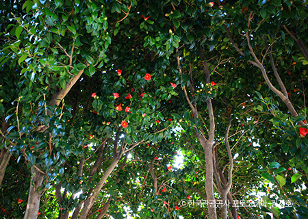 동백섬 지심도 여행 - 하늘에서 보면 마음 심을 닮았다 하여 불리는 지심도 - 언뜻 하나의 거대한 숲으로 보일 만큼 온갖 수목이 빽빽히 들어서 있는데 개중의 8할은 동백꽃이 차지하여 동백섬으로 불리기도 한다.