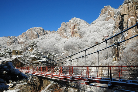 - 대둔산케이블카 탑승-금강구름다리-삼선구름다리-마천대 정상-약수정휴게소-케이블카 : 왕복 6.6㎞, 3시간소요(여유1시간)