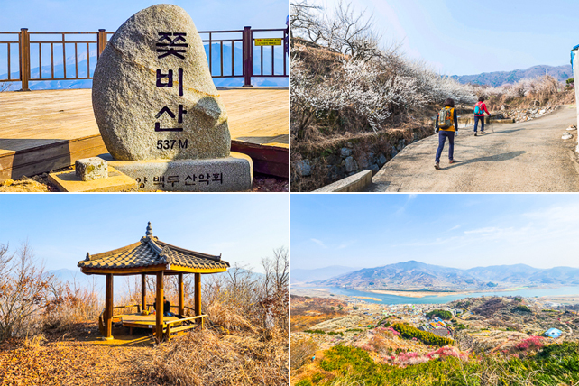 광양 쫓비산 봄꽃트래킹 - 관동마을-계밭골-갈미봉-쫓비산-청매실농원(광양매화축제)-주차장 : 약9.6㎞, 4시간30분 - 트래킹후 개별 점심식사(축제현장 식당이용 가능) * 트래킹난이도 : 중(하) ![]() ※쫓비산 트래킹 없이 광양매화축제만 관람 가능합니다. 섬진강과 자연이 어울려 만든마을 春3월이면 매화가 한가득한~매화마을 * 광양매화축제는 3월13일부터 22일까지 입니다. - 매화꽃 흩날리는 우리나라 대표 꽃길 - S자를 그리며 섬진강 따라 피어난 매화 풍경이 겨룰 데가 없다. - 광양에 가면 들어야 할 곳이 바로 홍쌍리 여사의 청매실 농원 - 하얀 백매화, 붉은 홍매화, 푸른 청매화 등 다양한 매화를 볼 수 있다. - 개별 점심식사