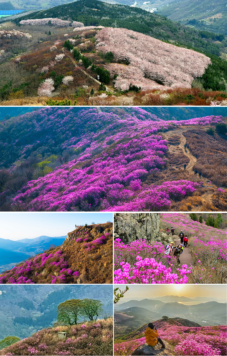 여수 영취산 진달래꽃 트래킹 - 멋진 풍경과 시원한 바다바람, 그리고 진달래를 만끽할 수 있는 곳 - 코스: GS칼텍스공장뒤 임도입구 출발(1㎞/20분)-골명치-우측(0.5㎞/30분)-진달래군락지(0.6㎞/40분)-가마봉(457m)(0.4㎞/20분)-개구리바위(0.3㎞/30분)-진례봉(영취산정상510m)(0.2㎞/10분)-도솔암(0.4㎞/15분)-봉우재 좌측 갈림길-좌측 임도길-골명치-출발장소 도착 - 소요시간: 약3시간30분~4시간30분 * 참고: 봉우재~골명치 약1.8㎞/60분(임도입구 출발지점 약15분) * 트래킹난이도 : 중(중) ![]() 여수 영취산