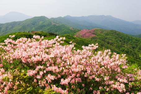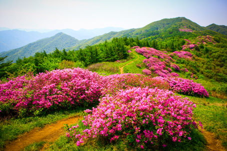 지리산 바래봉 철쭉 트래킹 - 운봉(지리산 허브밸리)-임도길 따라 바래봉 삼거리-철쭉 군락지-샘터-바래봉 정상(1,165m) 왕복 10㎞ (원점회귀) * 트래킹 난이도 : 중(하)