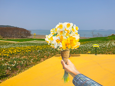 신안 가룡선착장 출발 10:40-선도 도착 11:26 (카페리 편도 약 45분소요) 선도 수선화축제 관광(입장료포함 : 6,000원) -관광 팀 : 수선화 꽃밭 자유 산책 -트레킹 팀 : 선착장-대덕산-옥녀봉-북촌마을-범덕산-북촌마을-선착장 (수선화 관람 가능) 약 7.5km, 3시간소요. 난이도 :하(상) - 점심식사 (관광팀. 트레킹팀 모두 신안상품권5천원 지급, 식당에서 사용가능)