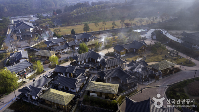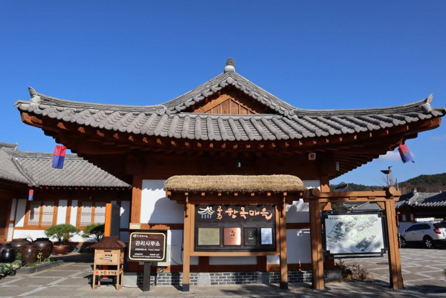 현대와 전통의 어울림, 한옥마을. 한옥은 지붕의 선이 아름답고 자연미가 넘친다는 이야기를 많이 한다. 자연스러운 곡선이 살아나는 용마루며, 위에서 아래로 내리면서 끝을 살짝 치켜 올린 내림마루와 추녀마루의 맵시는 여인네 버선코의 아름다움에 비하기에 부족함이 없다. 한옥은 농경 문화에 익숙했던 조상들에게 있어서는 주거 공간 외에도 쓰임새가 많은 건축물이다. 처마 밑 그늘진 곳은 푸성귀를 말려 보존하거나 씨로 쓸 옥수수나 마늘을 저장하는가 하면 약초를 저장하기도 하고 내당의 안방 대청 처마는 음식이 상하지 않게 보관하는 냉장고와 같은 역할을 하기도 했다. 한옥마을의 한옥 곳곳을 장식하고 있는 소품은 이러한 우리 조상들의 지혜를 잘 말해주고 있다.