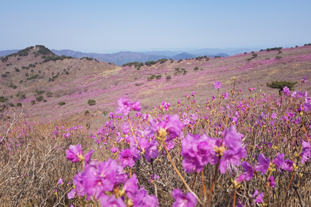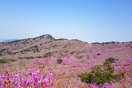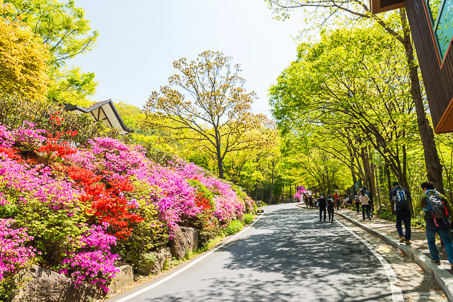 비슬산 참꽃길(왕복 셔틀버스 이용) - 비슬산(30여만평)의 광활한 평원에 흐드러지게 피어나는 분홍빛 참꽃 - 비슬산자연휴양림-셔틀버스-대견사-참꽃군락지-셔틀버스-비슬산자연휴양림주차장 : 왕복 3시간 소요 (셔틀버스 이용객이 많아 다소 시간이 지연될 수 도 있습니다.)