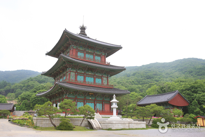 아홉 개의 봉우리가 병풍처럼 펼쳐져 연꽃이 피어난 듯 아름다운 모습의 연곡리에 자리하고 있다. 연곡리 절터는 삼국 시대부터 고려 시대에 이르는 큰 절터로만 전해 왔는데, 그 중심에 삼국 시대 목탑 건축의 전통을 잇는 삼 층 목탑을 세움으로써 새롭게 되살아났다. 보탑사가 주목받는 이유는 신라시대 황룡사 구층 목탑을 모델로 한 삼 층 목탑 양식이기 때문이다. 상륜부를 제외한 목탑 높이가 42.73m이며 목탑을 떠받치는 기둥만 29개에 이른다. 국내에서 유일하게 걸어서 내부를 오르내릴 수 있는 목탑이라는 점도 특별하다. 못을 일절 사용하지 않고 목재를 끼워서 맞추는 전통 방식을 고수했다.