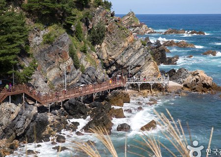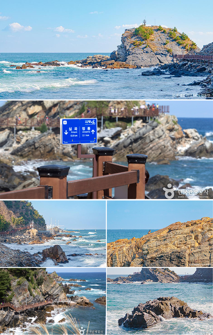 정동심곡 바다부채길 트래킹(입장료 포함) - 정동진 썬크루즈-투구바위-부채바위-심곡항(편도: 2.86㎞) - 2300만년 전 바다를 걷다, 정동심곡바다부채길 - 천연기념물로 지정된 곳 - 약 50년 동안 군 경계근무 정찰로로 일반인에게 개방되지 않았으나 2016년 10월 처음으로 개방된 천혜지역으로 동해 바다의 절경과 깊은 감동을 선사한다. * 날씨로 인해 바다부채길 통제시 대체코스로 변경됩니다. * 트래킹난이도 : 하(중) ![]() 정동심곡 바다부채길