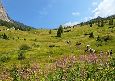 돌로미테의 중심에 위치한 셀라산군에서 가장 높은 봉우리인 피츠보에(Piz Boe/3,152m) 아랫길을 걷는 포르도이 트래킹. 케이블카를 타고 2,950m에 올라 트래킹을 시작하므로 힘들이지 않고도 약 3,000m 고도에 올라서서 돌로미테 최고봉 마르몰라다(Marmolada)를 비롯하여 발 디 파사(Val di Fassa), 로젠가르텐(Rogengarten), 사소룽고(Sasso Lungo) 산군들의 웅장한 풍경들을 만끽하실 수 있습니다. 마리아 산장에서 보에 산장까지 이어지는 길은 돌로미테의 가장 큰 매력 중 하나인 햇빛에 반사된 백운석이 신비하게 반짝이는 아름다움을 제대로 즐길 수 있는 구간입니다.