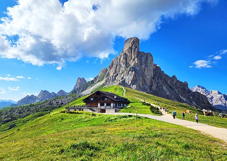호텔 조식 후 이동(50분소요) 라가주오이산장 파소 팔자레고(2,105m) 곤돌라로 라가주오이 산장(2,752m) 도착 후 라가주오이 전망대까지 풍경을 보며 다녀옵니다. ![]() 팔자레고(Passo Falzarego) 트레킹 ◐루트: 팔자레고(Passo Falzarego, 2105m)~>리메데스호수(Largo Limedes)~>아베라우산장(Rifugio Averau)에서 지아우고개 전망 ~>친퀘토리(Cinque Torri) 자유시간 후 리프트로 하산 ![]() +코르티나담페초 시내 투어 호텔 투숙 및 휴식 |